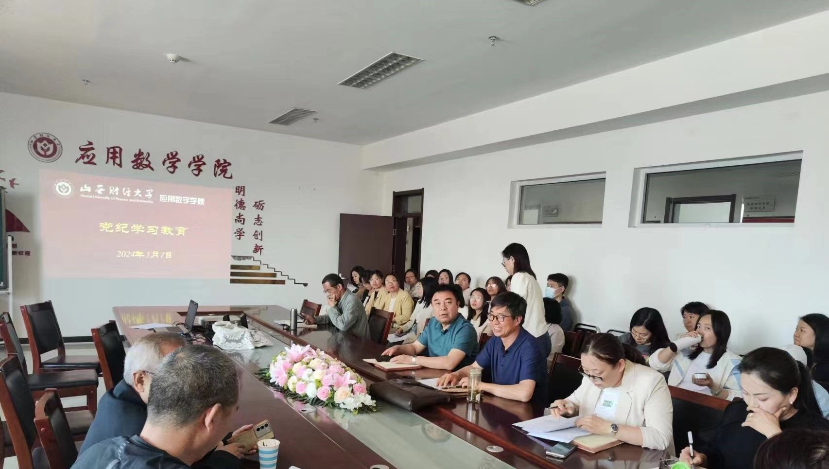按照beat365正版2024年教职工政治理论学习计划,2024年5月7日下午,公司党委书记秦春同志在全院范围内讲纪律党课。集中学习了《中国共产党纪律处分条例》的新修订的内容,并结合党的廉洁纪律以加强师德师风建设为主题开展教职工政治理论学习。