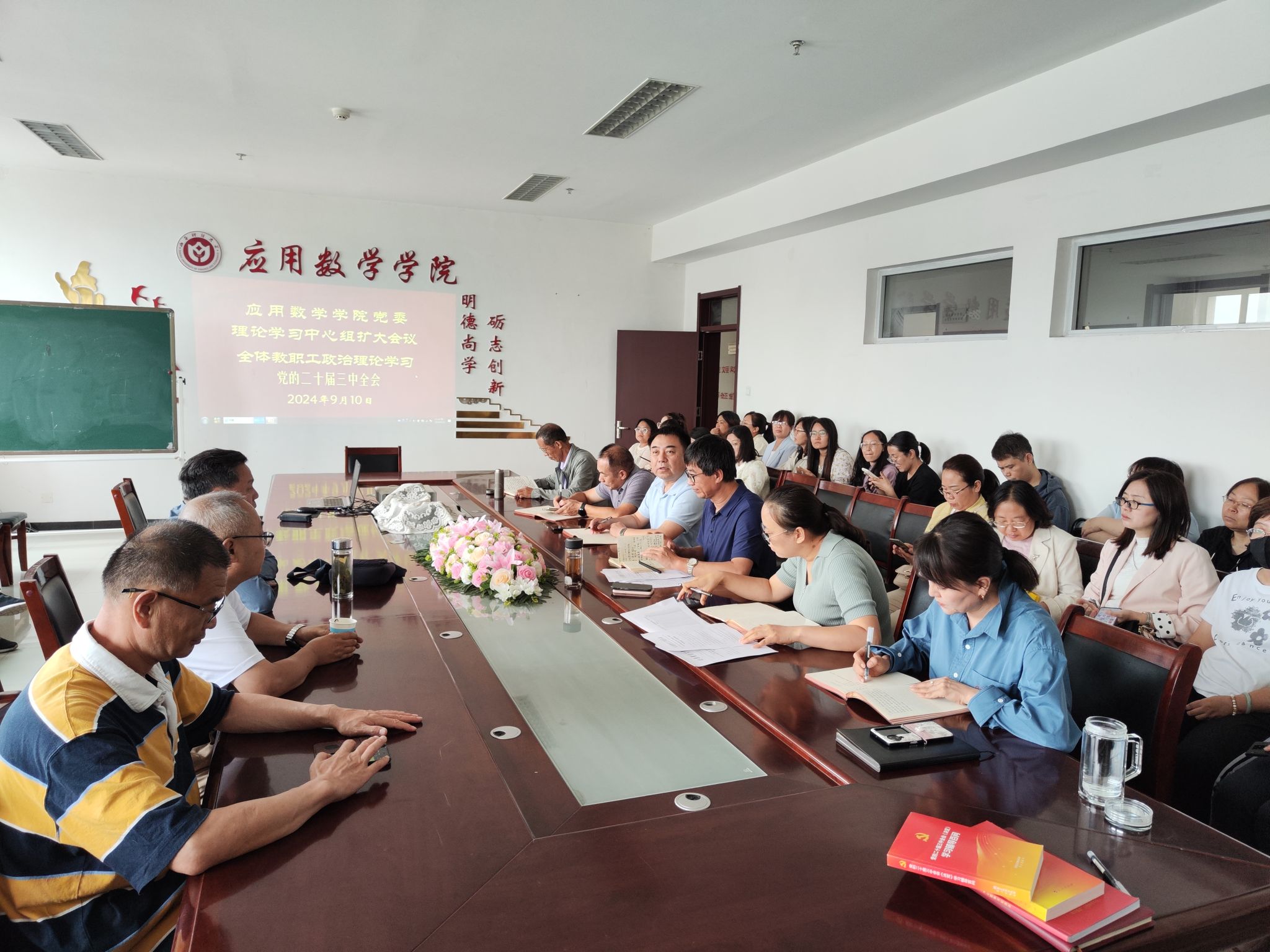 9月11日,公司党委理论学习中心组召开扩大会议,组织全体教职工集中学习了党的二十届三中全会《中共中央关于进一步全面深化改革、推进中国式现代化的决定》,在学院范围内掀起学习宣传贯彻党的二十届三中全会精神热潮。