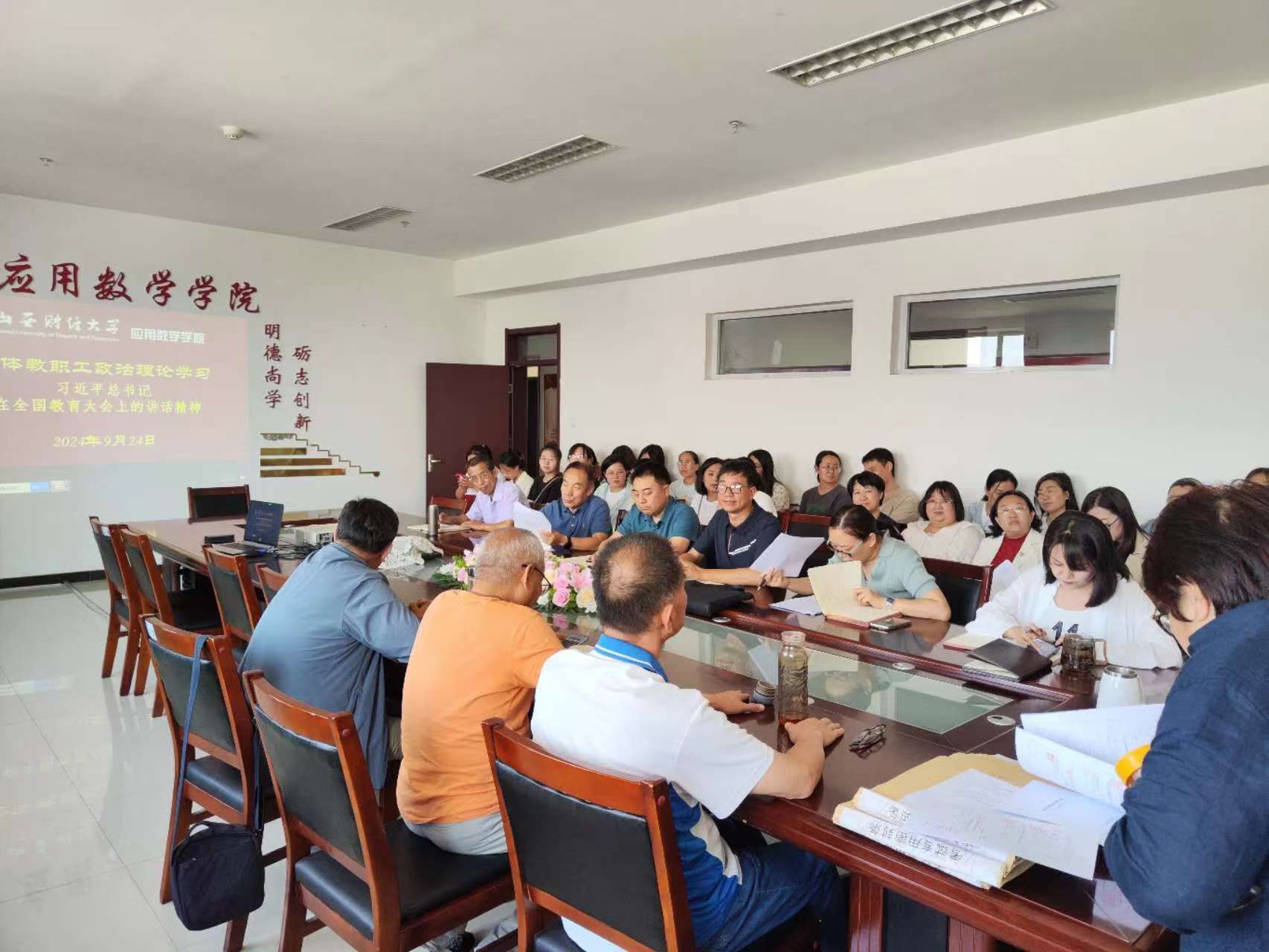 9月24日,公司党委开展全体教职工政治理论学习,党委副书记王庭带领大家集中学习了习近平在全国教育大会上的讲话精神。