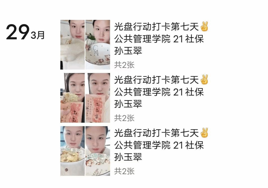 一粥一饭,当思来之不易。为给同学们提供一个“内练素质、外塑形象”的平台,引导员工文明就餐、合理消费,倡导节约意识,创建节约型大学校园,学院于3月23日至29日开展了以“我们都是追光者”为口号的大型“光盘行动”,旨在宣传我中华民族节约、朴素的良好品质,让每一个同学继承这一美好品德。
