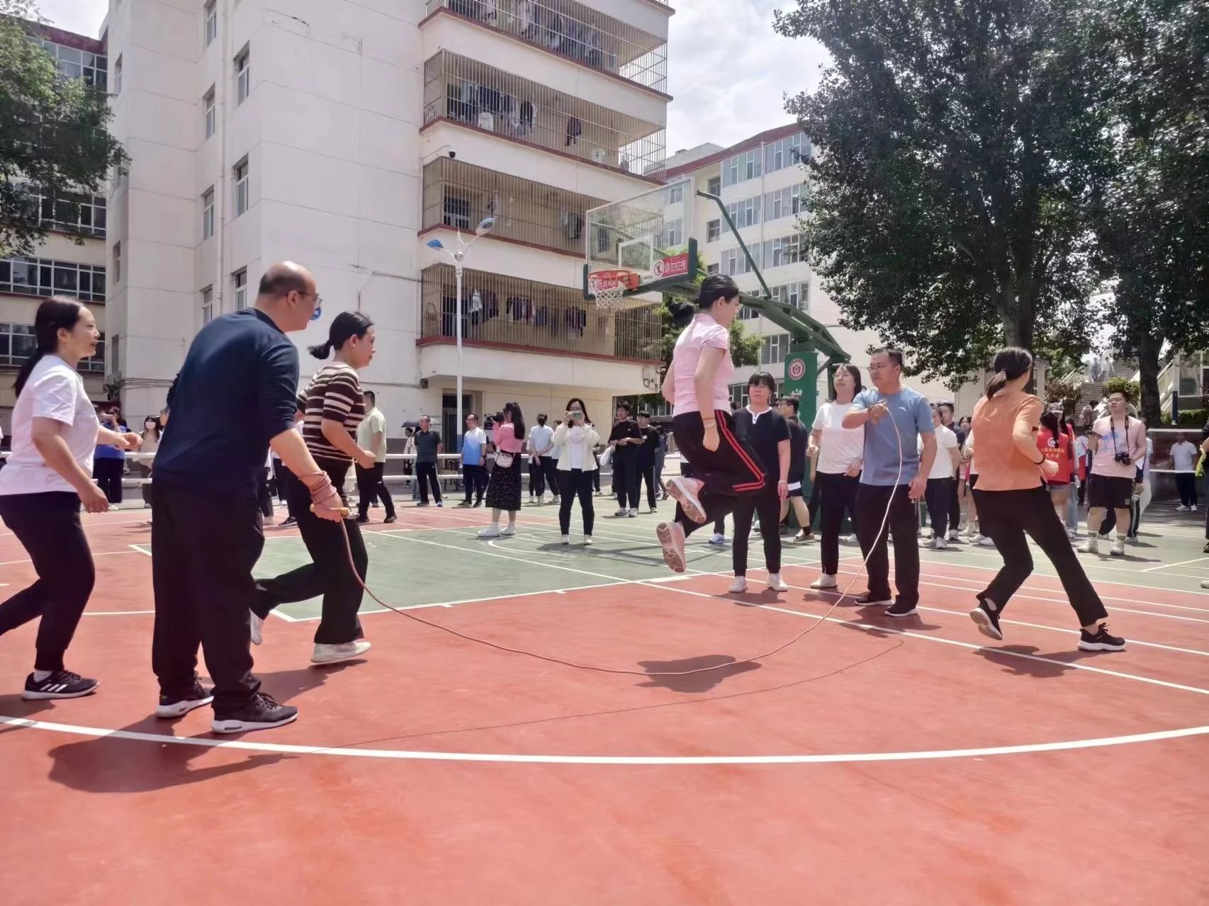 80余人次教职工参加了各项集体和个人项目,充分展现了应数教职工奋发向上、永不放弃的精神,团结进取、勇于争先的风貌。昔日的讲台上,他们严谨庄重,兢兢业业,今日的运动场上,来自beat365正版的教师们,活力满满,在集体跳绳,滚铁环,抢收抢种,投篮等众多项目中展现运动的魅力。