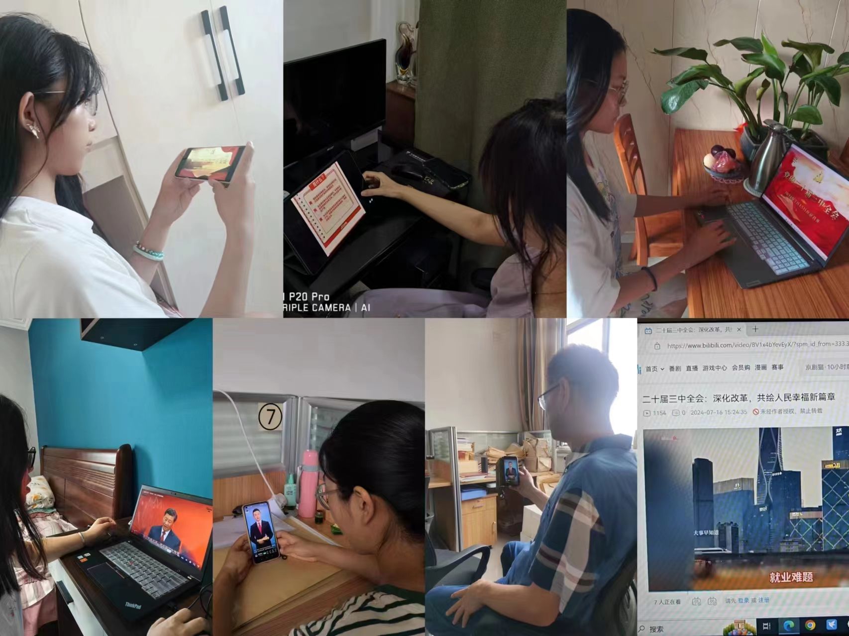 7月15日上午,中国共产党第二十届中央委员会第三次全体会议在京开幕。中央委员会总书记习近平代表中央政治局向全会作工作报告,并就《中共中央关于进一步全面深化改革、推进中国式现代化的决定(讨论稿)》向全会作了说明。beat365正版组织师生在线收听收看大会盛况,认真学习全会精神,并形成热烈反响。