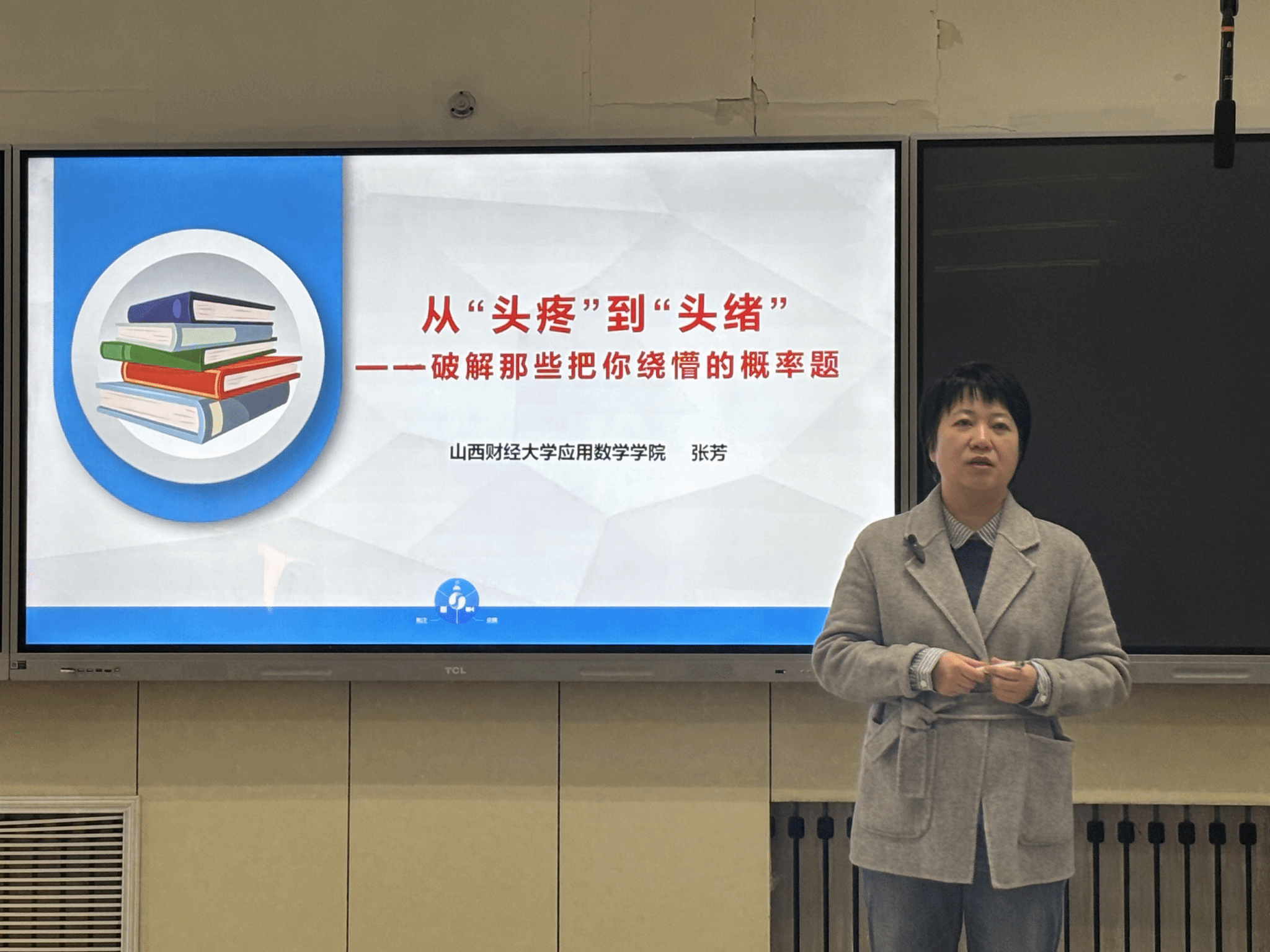 讲座中,张芳老师紧扣 “破解概率难题” 的核心,从员工普遍感到 “头疼” 的知识点切入,系统梳理了概率论课程中的重点、难点内容。她没有局限于理论讲解,而是结合生活实际与专业应用场景,将抽象的数学概念具象化、复杂的逻辑关系清晰化,帮助员工搭建起完整的知识框架。同时,针对员工关注的考研需求,张老师精选典型考研概率真题,深入剖析解题思路、方法技巧与易错点,引导员工掌握 “找头绪、破难点” 的解题逻辑,为备考员工提供了极具针对性的指导。整场讲座内容充实、重点突出,既夯实了基础,又强化了应用,有效破解了员工在概率学习中的困惑。