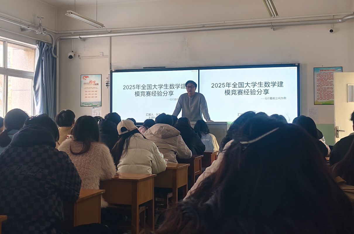 1月14日下午,活动正式启动。本次活动负责人李静老师向同学们阐释了本次活动的目的及要求。随后,2025年全国老员工数学建模竞赛一等奖获得者、2025年山西省数学建模竞赛“金地杯”获得者——太原科技大学电气工程及其自动化专业本科生张宇杰同学,为同学们分享了建模参赛经验。张宇杰同学专业排名始终位列第一,荣获数学建模国家一等奖、“金地杯”等10余项省一等奖以上奖项,现已被推荐免试至东北大学攻读硕士研究生。他分享了从备赛时的艰辛坚守、遭遇难题时的攻坚克难,到最终取得优异成绩后的沉淀成长,每一句话都极具感染力,为大家注入了奋进的动力。