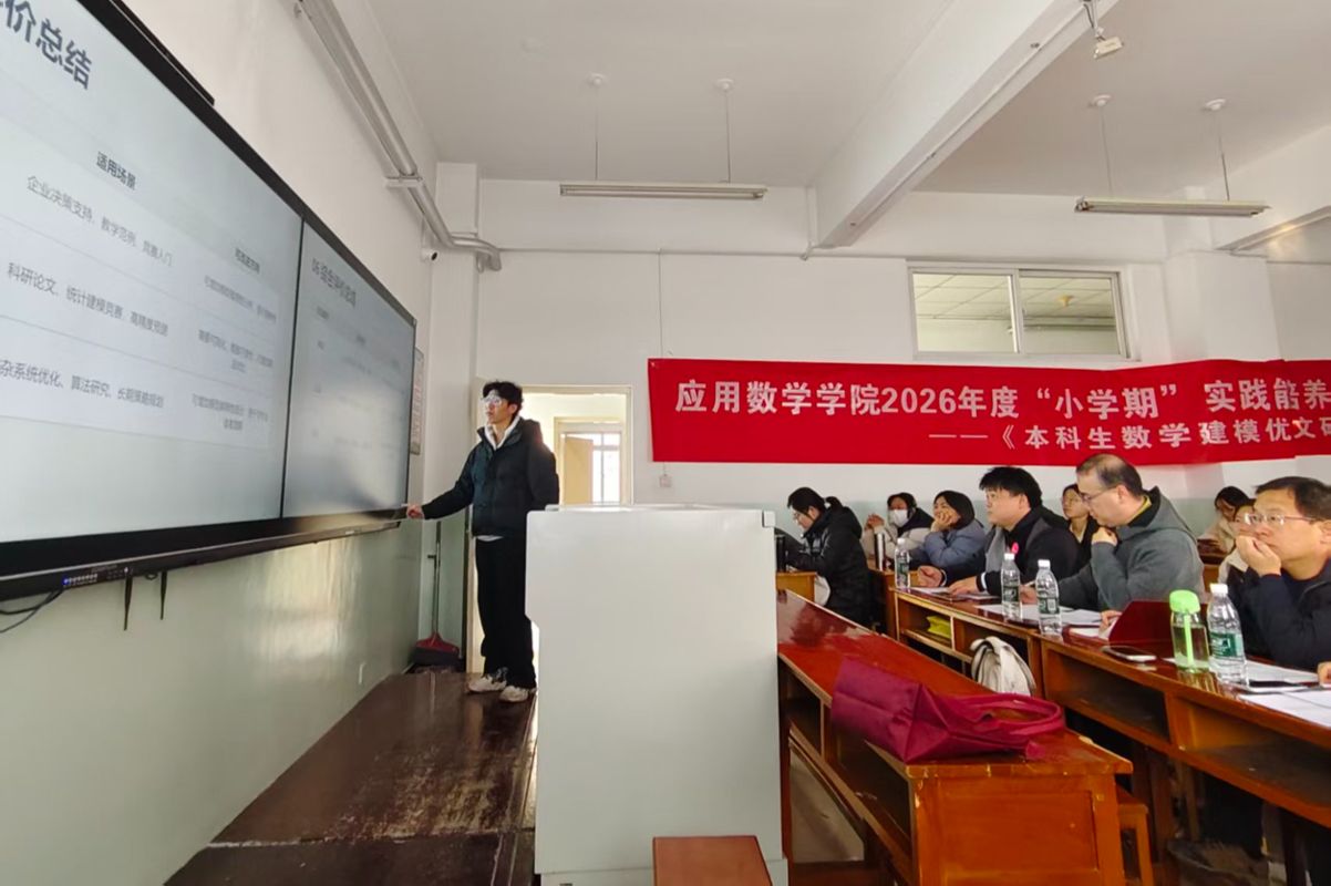 为进一步巩固本科生专业基础,增强本科生数学建模竞赛实际操作能力、学术论文撰写水平以及逻辑思辨素养,beat365正版于2026年1月14日至17日精心策划并开展了“小学期”实践活动——《本科生数学建模优秀论文研读》。全院大二、大三60余名本科生积极参与、自由组队,经过为期四天的深入钻研与小组研讨,顺利完成此次实践任务,营造出比学赶帮超的良好氛围,取得了显著成效。