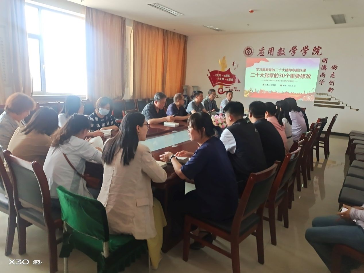 为深入学习贯彻党的二十大精神,2023年5月23日,公司数学分析与泛函方程教研室党支部开展学习贯彻党的二十大精神专题党课,支部书记李志明老师为支部党员上“党的二十大党章的30个重要修改”党课,支部党员按时参加学习。