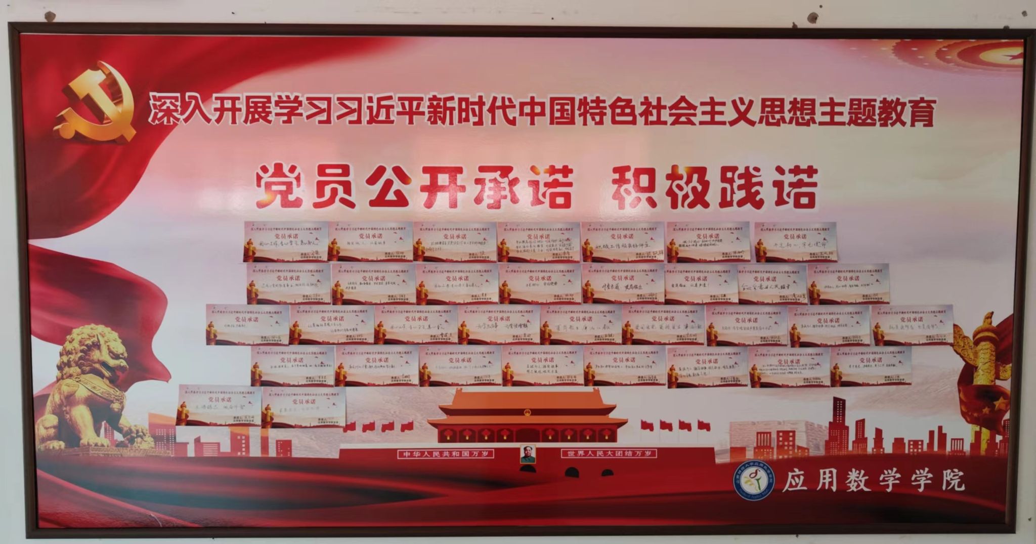 最后,为充分发挥党员的先锋模范作用,让党员肩上有责任、心中有压力,党政党支部围绕主题教育开展党员承诺“上墙”,责任“上心”活动,每一条承诺,短小精干、重点突出,既有宏观层面的承诺,又有具体的服务内容,做到党员承诺“上墙”更“上心”。