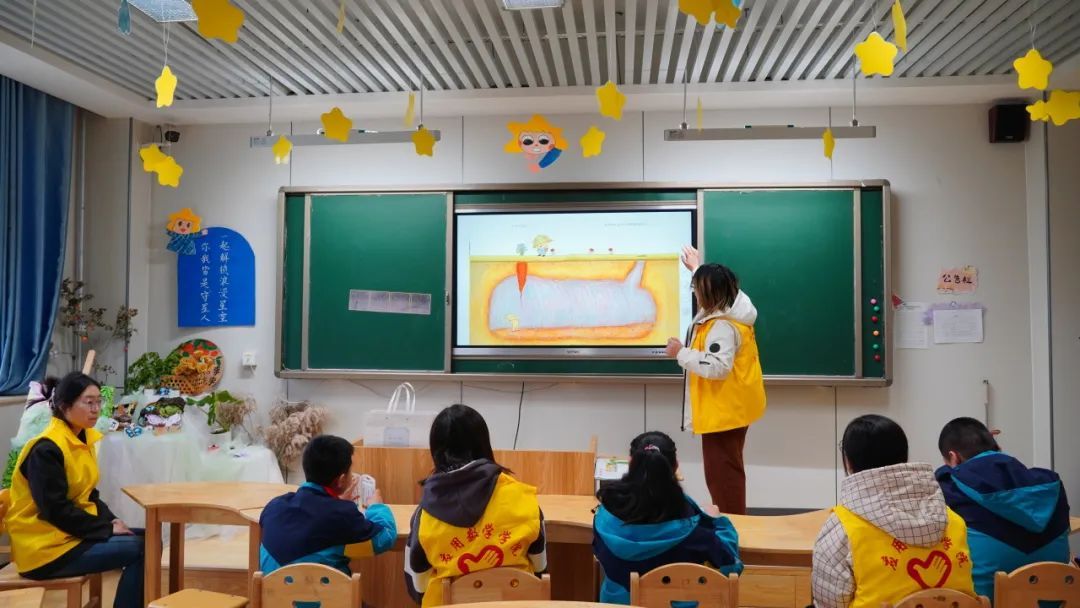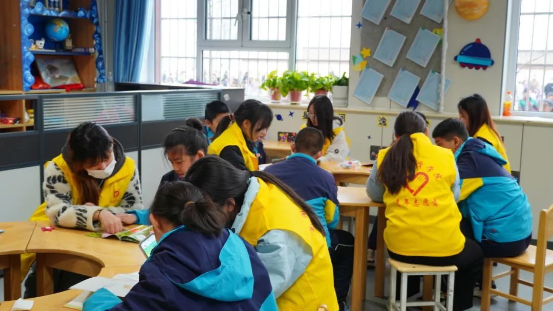 在 “绘画涂鸦” 这一极富创意激发价值的活动进程中,志愿者们秉持严谨细致的工作态度,对物资予以精准清点与有序分配,郑重地交予孩子们手中,陪伴孩子们创作。“故事阅读”环节,志愿者们精心挑选了有趣且易于理解的绘本或故事书。他们以生动有趣的方式为孩子们朗读故事,让他们在想象中自由翱翔,感受知识的魅力和阅读的乐趣。"彩色泡泡"游戏是孩子们的最爱。志愿者和老师带着孩子们来到室外,吹起五彩斑斓的泡泡。孩子们追逐着泡泡,欢声笑语回荡在校园的每一个角落。