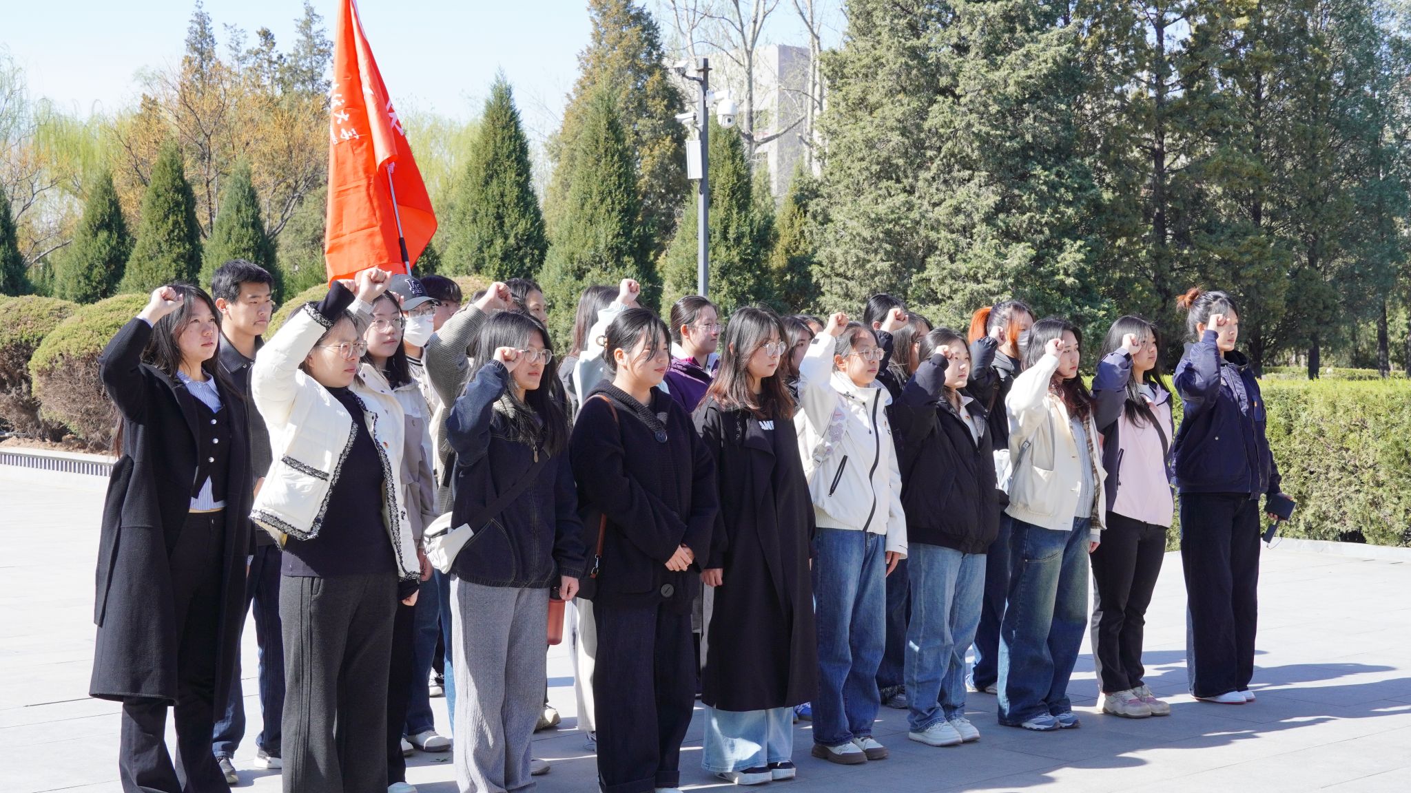 全体人员怀着对英雄的敬畏之心来到刘胡兰雕塑前,为刘胡兰烈士默哀一分钟,以寄托最深切的哀思。优秀员工代表向烈士敬献花篮,团员重温入团誓词以寄托我们对烈士的无尽思念和崇高敬意,愿烈士的精神如这鲜花般,永远绽放,永不凋零。