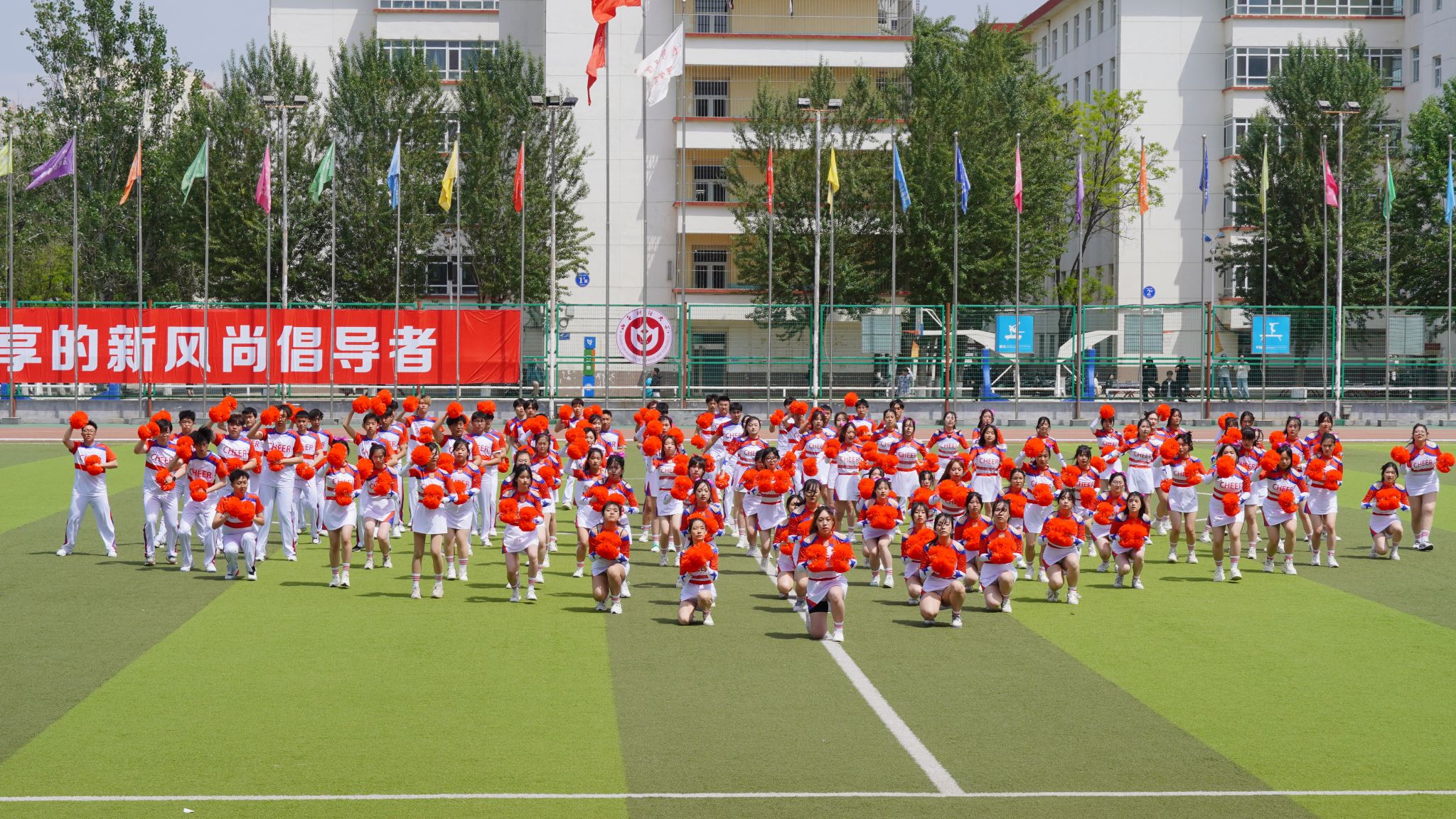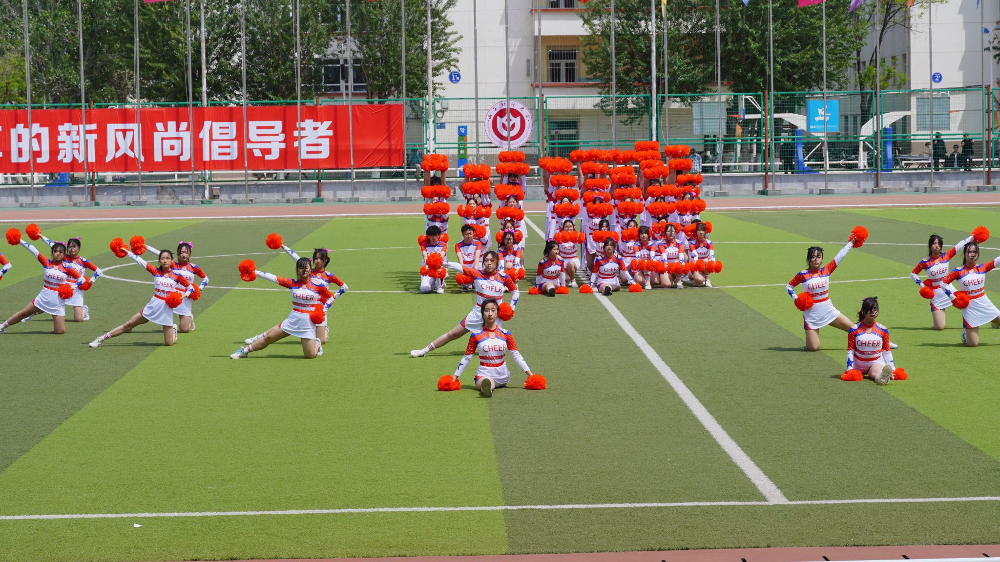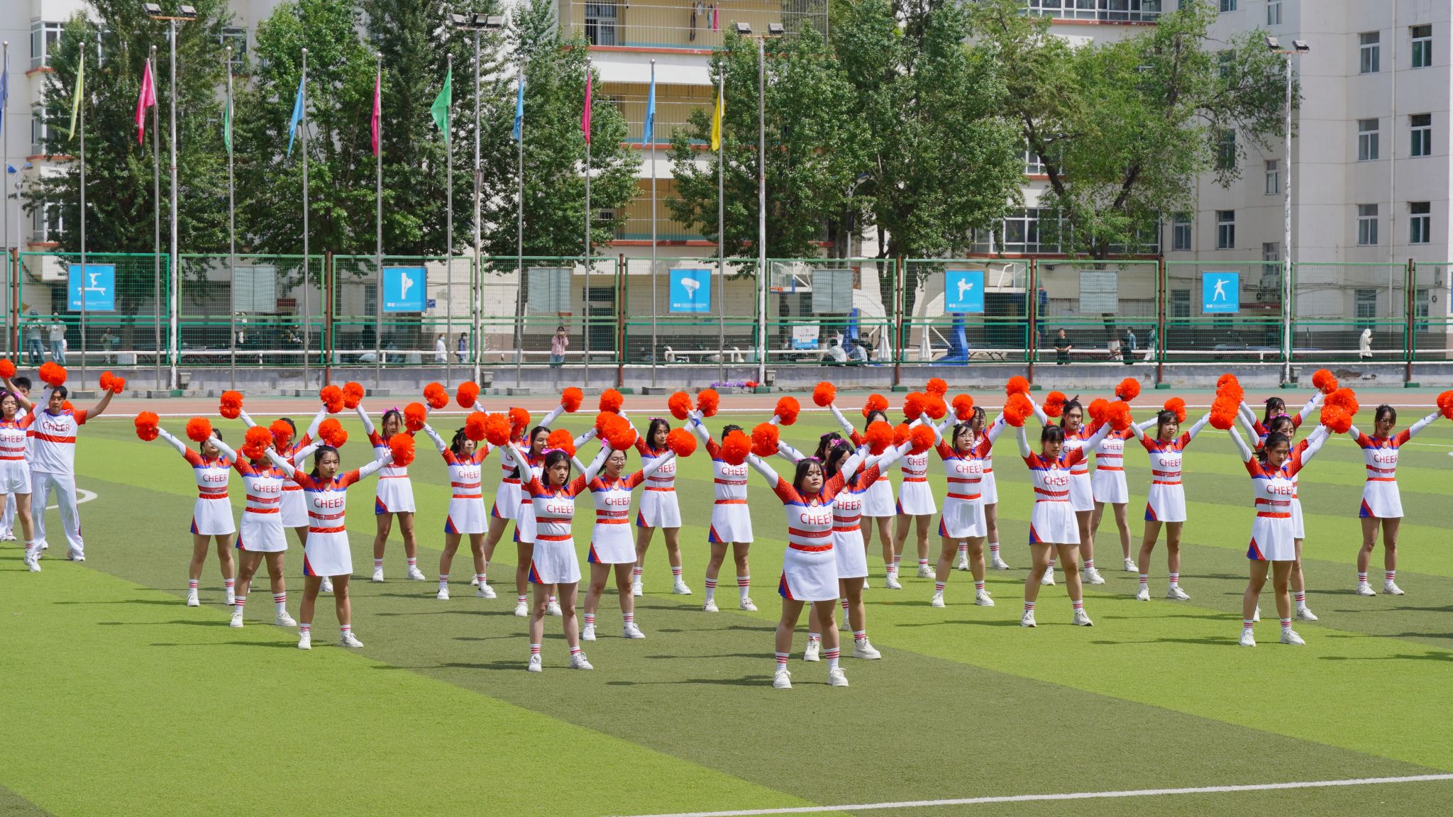 比赛现场,beat365正版的啦啦操队员们踏着动感的节拍,昂扬地走向操场中央。随着音乐的响起,花球在她们手中飞舞,仿佛是青春的火焰在燃烧。队员们用充满力量与热情的动作,诠释着青春的活力与激情。